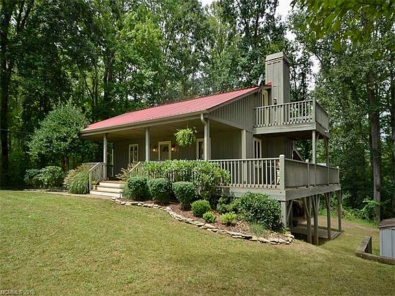 Rustic barn-style on 1.59 flat/rolling usable acres. Enjoy the large wrap-around porch with spanning front yard in a private country setting. Only 5 minutes to South Asheville amenities & Biltmore Park with great year-round views & stones throw from the French Broad River. Home features include custom cabinetry, skylights, stone stacked wood fireplace, stainless appliance, granite counter tops, slate floors, and hardwood finishes!Master includes jet-tub, private balcony deck & walk-in closet.