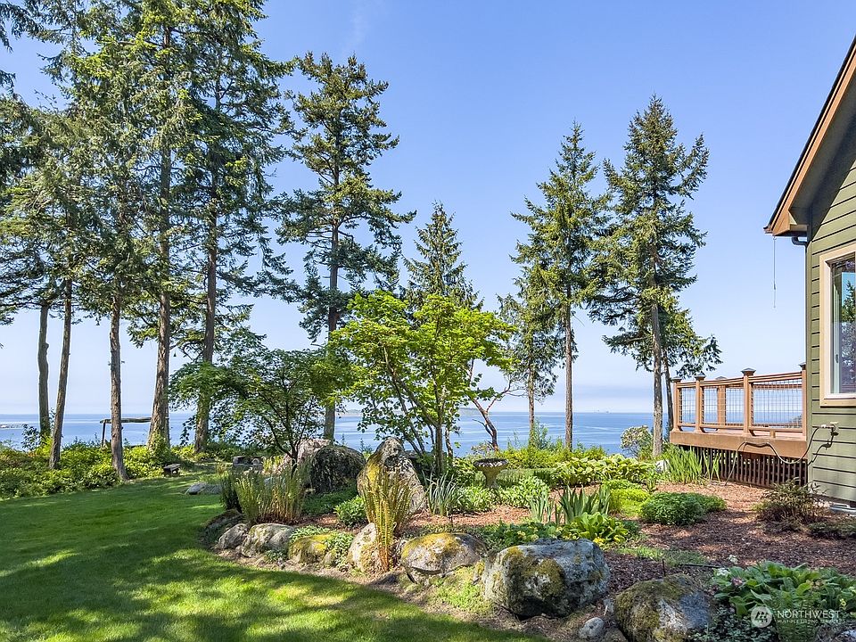 Never before on the market, this rare gem of a home has it all: location, privacy & VIEWS! Open your eyes to views of Protection Island & close your eyes to the sun setting over the waters of The Strait of Juan de Fuca. This spectacular home offers inspiring spaces & an exceptional amount of outdoor space. The great room features cathedral ceilings, multiple exposures & dining, while the kitchen boasts a large island & breakfast nook overlooking the amazing views. You have the benefit of one-level living if desired as the primary bedroom & ensuite bathroom are conveniently located on the main. Let's not forget about the 3-bay shop at the entrance, just before you head down to the main house that literally sits at the end of Goss Road.