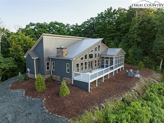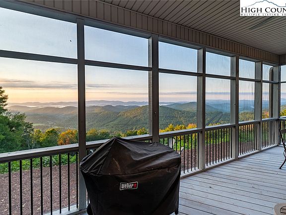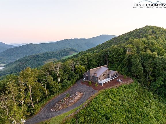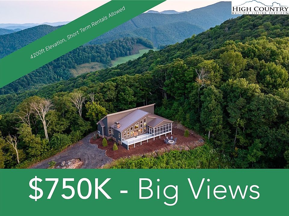 FULLY FURNISHED! If you are looking for a beautiful mountain home with unbelievable long-range (nearly 180 degree) mountain views, this move-in ready, newly painted 3 bedroom, 2 bath home, sitting at the top of Laurel Mountain with 6+ acres of permanent view protection is perfect for you!! 4200ft elevation! Enjoy cool breezes in the summer, the beautiful autumn colors in this partial log, newly painted mountain home is convenient to everything great in the High Country: 10 minutes to tubing in Todd, 29 minutes to Appalachian Ski Mountain (less to Boone!), and 18 minutes to shopping and dining in West Jefferson and Jefferson. This perfect mountain getaway is only 2 hours from Charlotte and 3 hours from Raleigh. 640 Great Sky View features a 20 foot wood, cathedral ceiling in the main living area with a stunning, newly refaced natural stone fireplace and a wall of windows facing the stunning mountain view. The gourmet kitchen features a huge island that seats five, dual copper sinks and an extra- large walk-in pantry. Off of the kitchen is a large view-facing screen porch with rocking chairs, hooks pre-set for the hammock and a dining table. A grill is provided for use on the extra-long newly stained deck. The two secondary bedrooms are beautifully furnished, offer walk-in closets and are on either side of the main bath which features a shower/soaking tub combo. The extra- large primary bath boasts 3 very large closets and a spacious primary bath with dual sinks and a super huge walk-in tiled shower. Outside, easy to maintain landscaping featuring locally grown conifers has been added and a large fire pit surrounded by Adirondack chairs is perfect for stargazing, viewing the moon as it rises and the lights of Boone in the distance. Safely tucked inside the gates of Great Sky community, a 500.00 yearly HOA fee covers all road work which is well maintained. Homes with views this amazing don’t come on the market often - come see it today!