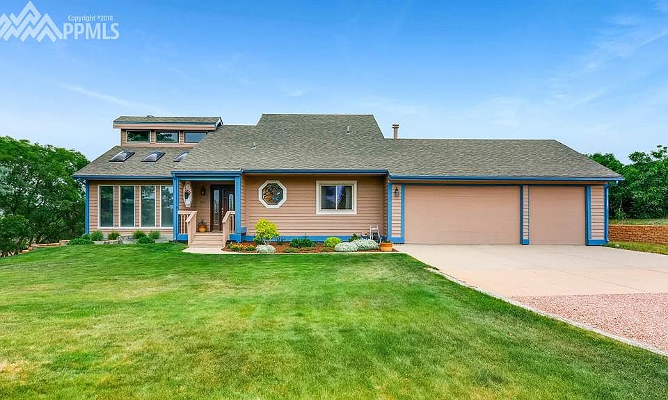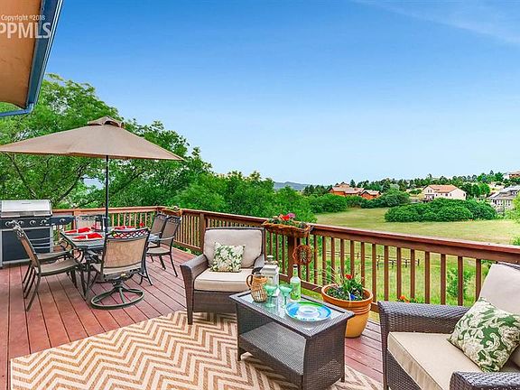 LOCATION....Enjoy peace, serenity & phenomenal mountain views from this beautiful Woodmoor home situated on an inviting .668 acre (2/3 ACRE) lot backing to open space. The kitchen & all bathrooms are remodeled. Front office space with natural light offers bonus living area in addition to a spacious living room with gas fireplace. Modern, open kitchen boasts maple cabinets, quartz counter tops, and custom backsplash. Main-level bedroom adjoins to a full bathroom w/ a luxurious jetted tub. Walkout basement /covered patio!
