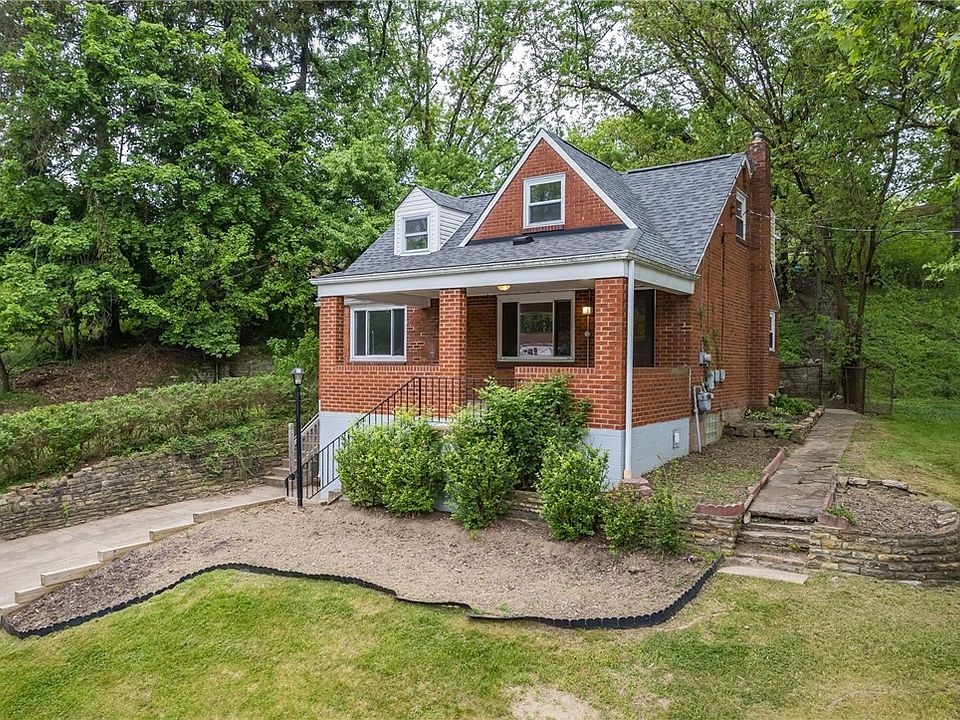 Move right in to this attractive brick 4 bedroom Cape Cod home. Large covered front porch to enjoy the quiet neighborhood from. One level living with the convenient main floor bedroom! 2 updated full bathrooms, one on each level. Upstairs there are three additional bedrooms with original hardwood floors. Deep 1 car garage, and a large basement with laundry room. Covered back patio and a flat backyard. Newer roof. Central A/C. Very close to beautiful Lee Drive Park. Welcome home!