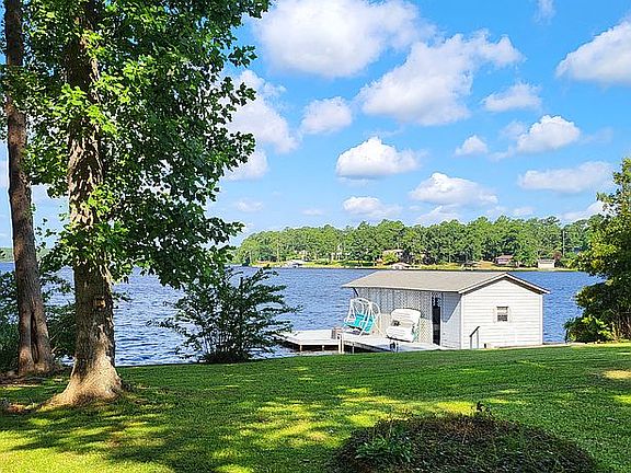 LAKE LIFE AT ITS BEST! SUNSETS GALORE! This unique 3 bedroom, 2 bath home is located on the water at Lake Robinson where every room in the house has a view of the lake. The floor plan is two stories with the kitchen, living room, dining room, and master suite on the first floor, while the second story has two additional bedrooms and the second bathroom. The master suite includes a walk-in closet and attached bathroom. The two upstairs bedrooms also include walk in closets with walk in attic access in each. The large living room stretches from the front of the home to the back, with windows allowing all day natural light, and a built-in fireplace with gas logs. The kitchen includes appliances, two large pantries, and bar for additional seating. Connected to the kitchen is the dining area which has two door access to the back screened in porch, a great spot to relax and enjoy sunsets over the lake. Just a few steps down from the screened in porch is a large deck, perfect for hosting summer BBQs or family get togethers. In the back/side yard there is a detached workshop with electric and water. Enjoy your own lake access with a sandy beach area, a private dock and boat house which includes an electric boat lift. This house also offers two driveways and a detached two car garage. Storage space is abundant! A unique feature included with the house is an artisan well.