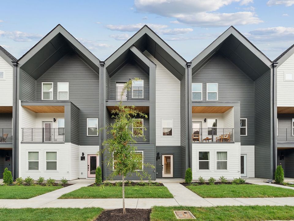 Donelson lovely NEW CONSTRUCTION! THE MARKHAM! This whole house rental is three stories, 1,813 sq ft and has a 2 car attached rear garage. The kitchen and half bath are on the 2nd story. The first level coming from the garage has one bedroom or office and then you walk up to the main living area with soaring ceilings. Main living area is sun drenched with the open floor plan modern kitchen and half bath. Up another flight of stairs and you have the top floor with 2 bedrooms with 2 full baths inside of each bedroom, ensuite. Balcony/deck off the primary bedroom upstairs. White cabinets, soft close drawers, Quartz countertops in kitchen and bathrooms, upgraded designer lighting. Less than 10 minutes to BNA airport, Nashville Greenway trailheads, and Donelson eateries like Nectar Urban Cantina and Tenn Fold Brewery. Walking distance to Homegrown Brewery, Phat Bites and McNamaras Pub. 10 miles from downtown Nashville. The Markham community offers sidewalks, a small dog park, and plenty of on street guest parking in front of each unit. Professionally managed by local office just down the street. Credit, background and income verification required. $50 to apply per adult. Deposit = one month's rent. Available now. Washer and Dryer are included and being delivered upon new tenant taking possession. Pet friendly! Must see!