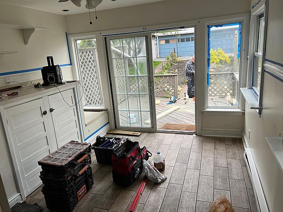 Second floor back bedroom converted into laundry room. Washer, dryer, porcelain sink with two drainboards cabinets above and below. Addition to the kitchen, deck and fully landscaped backyard.