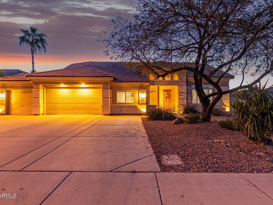 Stunning Ashley Park home meticulously maintained and upgraded by original owners! Featuring over $160k in upgrades throughout, this one-of-a-kind residence is sure to captivate both inside and out. Be welcomed into the elegant formal dining room with trayed ceilings perfect for hosting family and friends. The spacious formal living room is ideal for additional space to relax or use as a game or theater room. The Scandinavian chic kitchen was extensively remodeled in 2019 and contrasts warm maple 42'' cabinets accented by black crown molding and features quartz counters around a custom built island. A KitchenAid stainless appliance package including a microwave/convection oven with wall oven, induction cooktop, and three zone wine fridge makes cooking gourmet meals a breeze. Overlooking the family room, the kitchen truly is the heart of the home. Soaring ceilings with built-in surround sound speakers make movie night a blast. The custom fireplace tile surround complements the contemporary design elements throughout. New hardwood flooring in the main living areas, dcor paint, 4.5" baseboards, high-end luxury cut-loop carpet and newer window coverings are just some of the many interior upgrades. In addition to the family room, enjoy listening to your favorite music with linked speakers in the master bedroom, bonus room, and covered patio. The primary bedroom is the ultimate retreat as it overlooks the rear yard and features a fully remodeled luxury spa-like ensuite. The master ensuite features new raised height dual vanity with quartz counters, expanded shower with frameless glass enclosure, and a free-standing soaking tub perfect for relaxation. The southern wing of the home features a bedroom with its own full bathroom, while the northern wing has three additional bedrooms with walk-in closets and a tertiary bathroom with dual sinks and private toilet/bathing room. All bathrooms feature porcelain cement-look tile, quartz counters, new cabinetry, and plumbing fixtures. The fifth bedroom features a custom Classy Closet home office with two desk stations and plenty of storage space. Restore and relax after a long day listening to the soothing sounds of the waterfall leading to your own koi pond. The custom ramada expands the exterior living space so you can hang out in the shade poolside or grab chairs around the outdoor kitchen with built-in BBQ or the exterior fireplace. The sparkling pebble-tec diving pool completes this entertaining paradise. A new roof, newer 16.5 SEER HVAC system, and garage cabinets are an additional bonus.