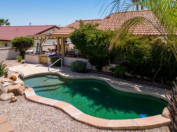 Welcome home! This beautiful home has been well loved. Home offers easy care landscaping with mature trees. Back yard oasis with a play pool and covered gazebo to enjoy the Arizona outdoor lifestyle. Home has large living room, spacious kitchen with lots of storage. Breakfast bar and dining area. There is a home office with french doors that doubles as a 3rd bedroom. Large main suite with private bath and walk in closet. Guest bedroom and guest bath. Located near down town for easy access to shopping.