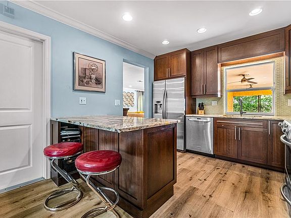 this waterfront gem dazzles with existing highlights and infinite possibilities. The property, within earshot of Lake Rogers & Spanish River Park, is built for entertaining. Lush landscaping frames an expansive pool that overlooks a