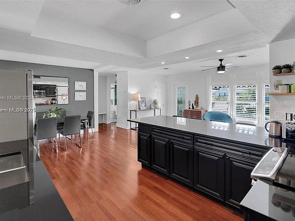 Beautifully remodeled home with an amazing backyard, pool, tiki hut, surround sound system and more. A split floor plan with a redesigned kitchen with plenty of cabinet space, granite countertops, and a great view of the pool area. New AC (2024), full impact windows, doors, 2 car garage, metal roof and spacious driveway. Formal living and dining area, den area which can be used as an office and a screened patio; this home is ideally for entertaining! Conveniently located in a great location in east Boca Raton, just 10 minutes from the ocean, Mizner Park, in A++ School Zone, restaurants, shopping, grocery stores.