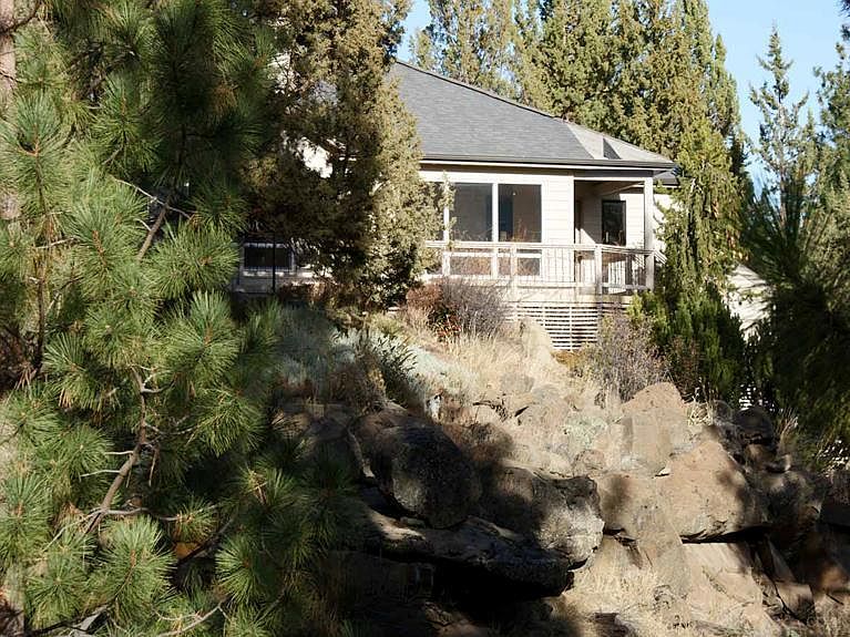 Single level home with an elevator from the garage up to the living area. Spacious living room with a vaulted ceiling and big windows overlooking the common area. Private setting adjacent to common area. Across the street from the Deschutes River, which is accessed by common area.