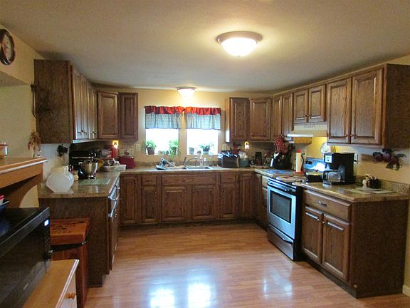 HUGE PRICE REDUCTION!!! Hilltop setting for this 3 bedroom, 2 bath ranch home on 4.1 Acres m/l with a 36x24 pole barn. Home has been completely updated from insulation to fresh interior / exterior paint and so much more in between. Covered, wrap around porch on 3 sides for relaxing and enjoying the scenery. Master bedroom has new carpet and bath with shower and larger closet. The other 2 bedrooms share a full bath. Kitchen has custom cabinets and comes complete with range, refrigerator and microwave. Mud room / laundry room is located just off the kitchen. Spacious dining room for gatherings,