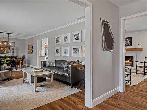 Settle right in to this beautifully updated, meticulously maintained ranch home located just 1.5 miles from and golf-cartable to Historic Roswell and Roswell North ES. Youâll love the style and attention to detail with shiplap, barn doors, 5-panel interior doors, designer lighting and designer paint throughout. Relax and unwind in the cozy fireside family room with access to the patio in a private professionally landscaped backyard. Get creative in the completely remodeled kitchen with stainless steel appliances, quartz counters, custom tile backsplash, Shaker soft close cabinets, brushed gold hardware and farmhouse sink overlooking the family room. Kitchen opens to a light-filled breakfast room with bay window and adjacent flex space that currently accommodates a small desk. The laundry room, a newly added full bath and access to the backyard are located off the kitchen. Enjoy the easy-care of luxury vinyl flooring throughout the living space and ownerâs suite. Entertain friends in the separate living and dining room adjacent to the foyer. Retreat to the owner's suite with access to patio, barn doors to walk-in closet and sizeable bath. Three spacious secondary bedrooms and a full bath complete the private living space of this sprawling ranch. Dine alfresco on the patio, then gather around the firepit to roast marshmallows. You'll appreciate this great community with no HOA, just moments to Historic Roswell and easy access to Downtown Alpharetta, Avalon, Chattahoochee Nature Center, Chattahoochee River National Recreation Area and Roswell Area Park. Rest easy with newer windows and most major systems (roof, HVAC, water heater) replaced within the last 6 years.