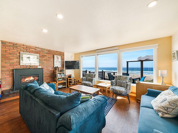 Versatile oceanfront living in the heart of Manzanita! Unrivaled views of the ocean, beach, and iconic Neahkahnie Mountain from every level of this exceptional home with easy beach access. Designed for flexibility, this legal duplex functions beautifully as a single-family residence with an attached unit for a multigenerational retreat, or as a primary home with potential for a short or long-term rental income unit. Enjoy expansive deck space with a protective glass windbreak, perfect for soaking in the views with a sheltered place to relax, BBQ, and enjoy the outdoors, even during those summer NW winds. Features include 8 bedrooms, 4 baths, 2 full kitchens, 1 kitchenette w/wetbar, 3 propane fireplaces, and shared laundry across 3,387 sq ft. Set on an oversized .16- acre lot with durable cedar siding and metal roof. Property meets current code for duplex use. Sold partially furnished (minus list of exclusions). Buyer to verify short-term rental regulations for intended use.