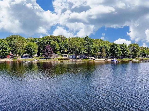 Now is the time to make a purchase to be ready for next summer! Sellers loss and buyers gain to be on a 450 acre ski lake that is sun up to sun down plus have a outbuilding and back lot for less than 200k. This lakefront bungalow is new all the way down to the studs. Great views of the lake while facing west sitting on 600 plus sqft of stamped concrete patio or just relaxing sitting in your living room that has cathedral ceilings. 2 bedrooms with closets and 1 full bath with a ceramic shower. All new kitchen cabinets, appliances and countertops that make this a truly move in ready home. Also included is 56x83 back lot directly behind the home that has a 32x24 detached outbuilding on it for all your toys. All new wiring, insulation, windows, roof, drywall, fixtures, flooring and trim. All electric high efficient central air and heat system. You will want to come and check out for yourself.