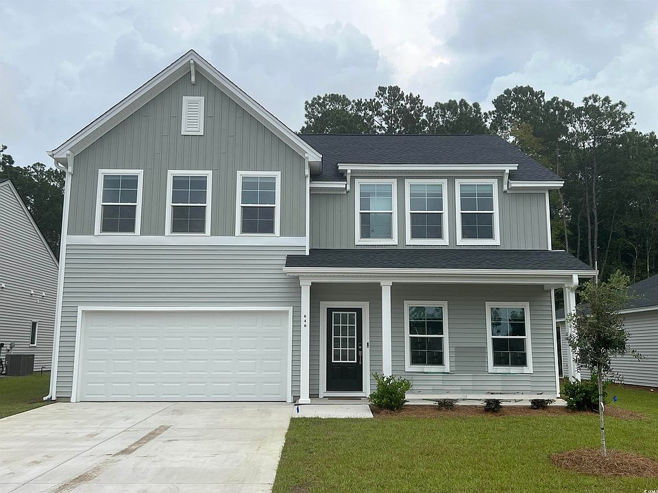 The McDowell is an elegant two-story floorplan that features five spacious bedrooms and 3 well-appointed bathrooms. As you enter, you'll be greeted by luxury vinyl plank flooring that flows throughout the main living areas on the first floor. The expansive great room seamlessly connects to the kitchen and dining areas, creating an inviting space for gatherings. The kitchen boasts stylish white cabinets, stunning quartz countertops, and a generous island with ample seating for up to five people. A thoughtfully placed guest room at the back of the home ensures privacy for visitors. On the second floor, you'll find the primary bedroom, which showcases a beautiful, vaulted ceiling, a large walk-in closet, and a private bath complete with a five-foot shower. In addition, there are three more bedrooms, a versatile loft space, a shared bath and a conveniently located laundry room on this level. A charming rear covered porch with a pond view completes this delightful home. We invite you to explore this attractive five-bedroom floor plan, located just 9 miles from nine miles to toes in the sand at Surfside Beach! The Lyden Village community offers convenience to Myrtle Beach, 31 access, and minutes from the CCU campus.