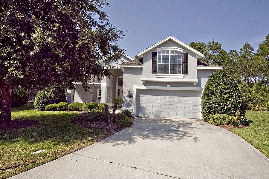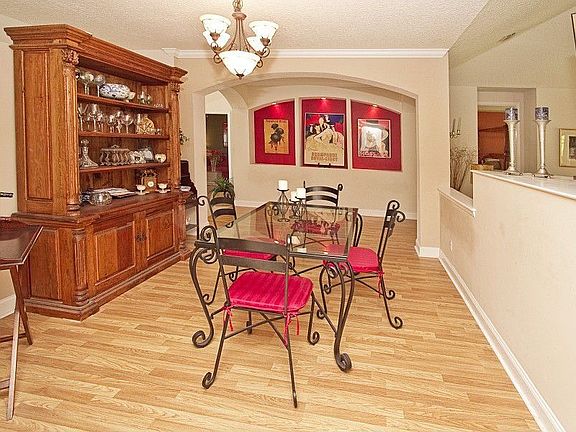 Very nice home on cul-de-sac lot which backs to preserve. Three sliding doors open from family room to covered porch. Unique floorplan is very open and has lots of niches. Front bedroom can be a home office. Upstairs bonus room has closet and full bath. Golf course community. Privacy wood fence on sides, wrought iron at back. Shelving in garage stays.
