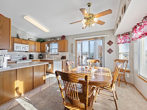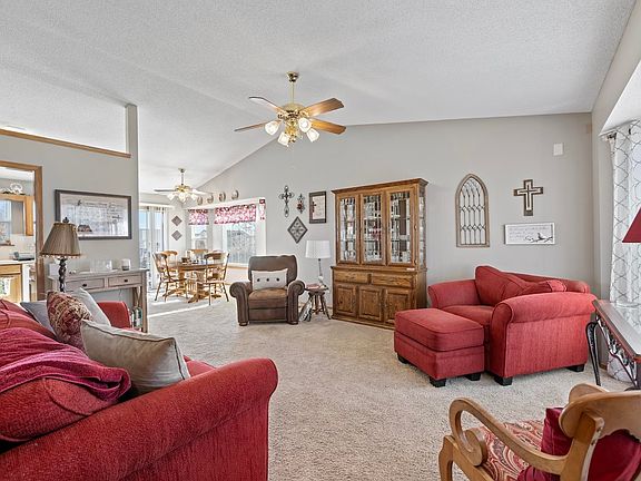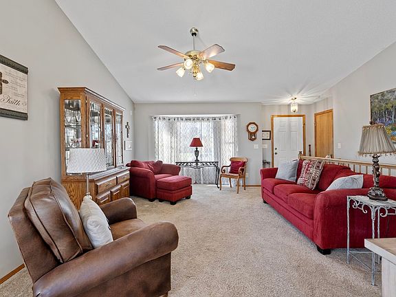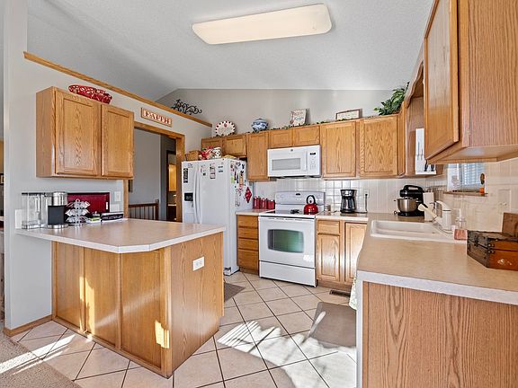 Welcome to this charming ranch home in the quiet Carriage Crossing neighborhood, located within the highly sought-after Maize School District. Sitting on over a 1/4-acre lot, this home boasts more than 2,240 finished square feet and outstanding curb appeal with its well-maintained front landscaping. Inside, the living room features vaulted ceilings and bay windows, creating a bright and open space. The dining room, also adorned with bay windows, opens to the kitchen and provides access to the backyard deck through sliding glass doors. The kitchen includes a large peninsula with an eating bar, tile floors, and all appliances stay with the home. The spacious primary bedroom offers coffered ceilings, a walk-in closet, and an en suite bath with double sinks, tile floors, a luxurious corner jetted tub, and a stand-alone shower. A second bedroom, hall bath, and main floor laundry complete the upper level. The finished view-out basement is perfect for entertaining or relaxing, with a large family room featuring a gas fireplace with tile and wood surround. Two additional bedrooms and a third full bath complete this level. Step outside to enjoy the expansive backyard, which includes a new wood privacy and chain-link fence, an irrigation well, a sprinkler system, and a newer storage shed. New irrigation pump. New microwave. Owned water softener and water filter. Conveniently located near New Market Square and area shopping, dining, and entertainment options, this home offers both comfort and convenience. Don’t miss your chance to make this home your own!! Call today for your own private showing!