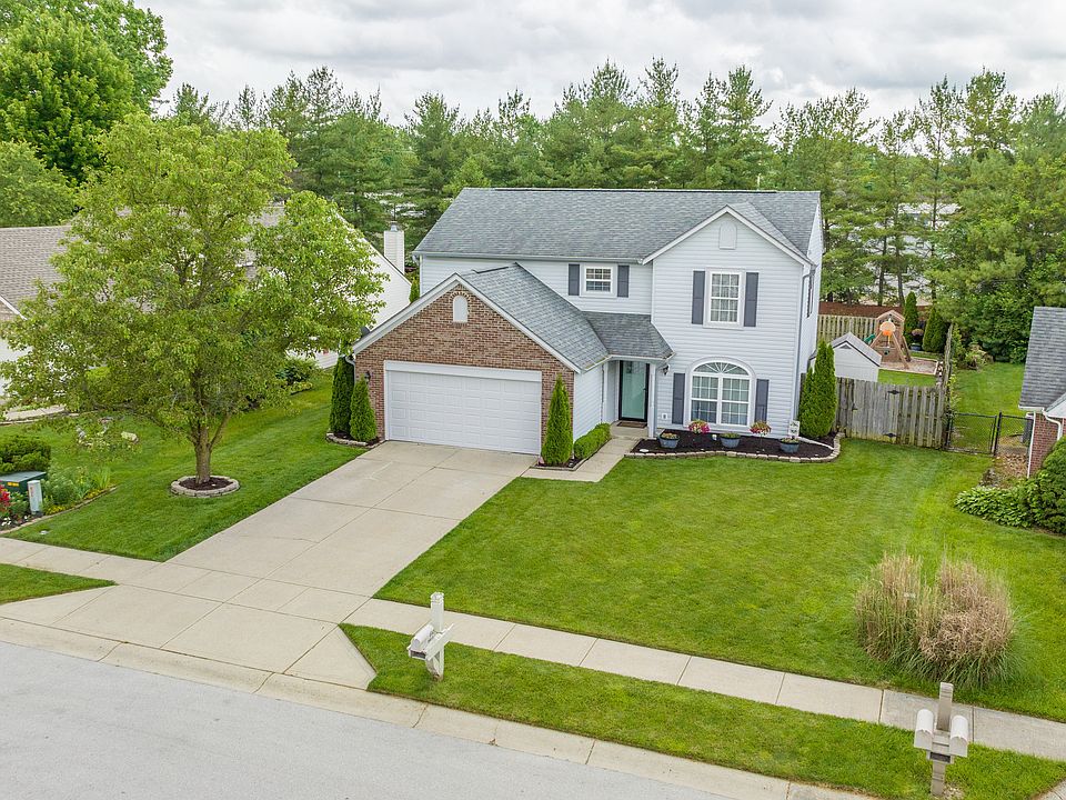 Gorgeous home with tons of updates and personality. Beautifully done kitchen with dreamy countertops, lovely new cabinets, a pantry; kitchen complete with 'work' area. Inviting family room is open to kitchen/dining area; a great place to relax. Living room could also be used as a dining room if buyer preferred. Gleaming wood floors throughout living areas and are carried out thru rooms upstairs. Generous cement patio perfect for entertaining & all nestled within a fabulous privacy fenced rear yard. Bathrooms are gleaming with shining custom tile, updated fixtures and cabinetry. A home that is a true joy to return to. UPDATED 4 bedrooms, 2.5 baths, 2 car garage & privacy fenced and all in desirable Center Grove. PRICE REDUCED TO SELL. All this AND possession at closing. Welcome home!
