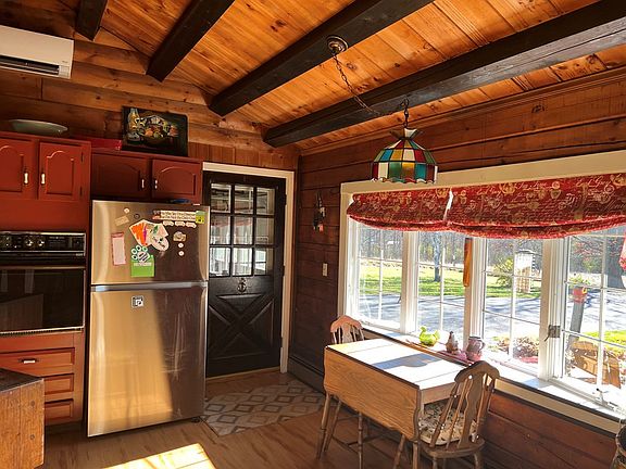 Come see all the work that's been done to this log home on 1.9 acres in the Peru School District. This home features a large eat in kitchen, dining room, den and sunny, spacious living room. Easy to maintain flooring throughout - Pergo on the first floor and laminate upstairs. Plenty of ways to stay warm with newly installed heat pumps, oil hot water baseboard, a Vermont Casting Woodstove and monitors in the kitchen and basement. On demand hot water heater installed in 2022. New roof, chimney work, paint inside and out and most windows replaced in 2019. Workshop behind the garage. Large yard with plenty of room, dog pen and garden shed for lawn equipment. Country views and gardens. Verizon FIOS Internet available. Short drive to schools and shopping.