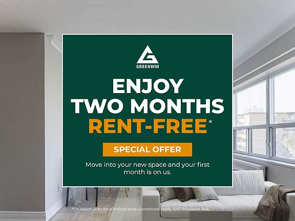 AboutWelcome to 640 Roselawn Ave., located off Bathurst Street in one of Toronto's oldest and most beautiful neighbourhoods, Forest Hill. Rent with confidence at this Certified Rental Building (CRB), featuring a brand-new lobby and upgraded common areas. Select suites offer private balconies, perfect for enjoying your own outdoor space. The building is equipped with convenient laundry facilities on the 2nd, 4th, and 6th floors, and is wheelchair accessible with on-site elevators. Our dedicated on-site building staff are always available to assist residents, and a comprehensive recycling program supports eco-friendly living.640 Roselawn Ave. is steps away from Forest Hill's Belt Line Trail, tennis courts, and Memorial Park. It is also conveniently located near TTC, schools, shops, services, restaurants, and more. Commuting is easy with the Allen Expressway and Highway 401 just a few minutes' drive away. Discover the perfect blend of luxury, convenience, and community at 640 Roselawn Ave.