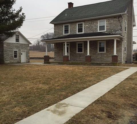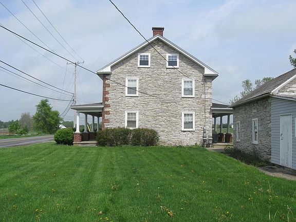 Beautiful stone farmhouse features kitchen with range/refrig/dw/microwave, DR, LR w/propane fireplace, attic for storage, detached garage and summer kitchen for storage.