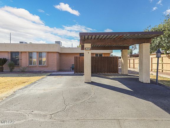 Discover this charming 2-bedroom, 2-bathroom townhome spanning 1,002 sqft, ideally located near the popular Pantano River Park Trail, shopping plazas, and an array of dining options. This inviting home features an open layout with wood laminate floors, a cozy built-in fireplace, and a bright kitchen complete with ample storage and a breakfast bar. The updated bathrooms showcase modern tilework and stylish finishes. Step outside to the private, low-maintenance backyard with a covered patio, perfect for relaxing or entertaining. A covered carport adds convenience to this move-in-ready gem. Don't miss out on this perfectly situated townhome--schedule your showing today!