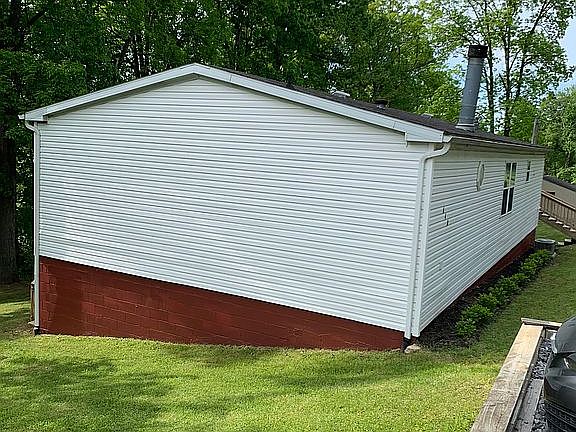Affordable 3 br, 2 bath (1,400 sq feet) house for sale by owner on South Pierpont Road nestled in the trees. Cheat Lake area of Morgantown, Cheat Lake School District. This is a manufactured home on a full permanent basement foundation, which is partially finished. Entire house has new Life-lock Water Proof flooring. Three bedrooms are located on the main level. The master bedroom has two walk in closets, and an updated master bath with double vanity, tub and separate shower. Second bathroom has an updated standard bath with tub/shower combo and one sink. The kitchen is updated with soft-close cabinets and the dining area is combined as open concept. The kitchen includes a Whirlpool gas range and refrigerator and new dishwasher. The living room is very large with a traditional wood burning fireplace. Included is a Whirlpool washer and Maytag dryer with the house. The entire home is central air and gas (LP) heating. New Electric hot water heater. City water and septic system, which has been pumped out and inspected. Wooden decks located off the rear entrance and the back of the house. A large 30 x 40 storage garage on the property with electric. The house is located on 1 acre of land, which partially wooded. The house has been updated and has been very low maintenance. This is a great family home located in a quiet neighborhood, less than two miles off the South Pierpont Exit. The property is accessed via a shared, private lane and shared by three neighbors.
