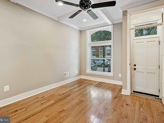 Approximately 8 years left on CHAP. Beautifully renovated townhome with parking and rooftop deck, blocks from Canton Square. The main level is an open concept with kitchen and living room and gorgeous hardwood floors. The upper level has two bedrooms, two full bathroom and the lower level has two rooms, one full bathroom and laundry. Some highlights include custom tile, trim, stainless steel appliances, walk-in closets, and exposed brick.