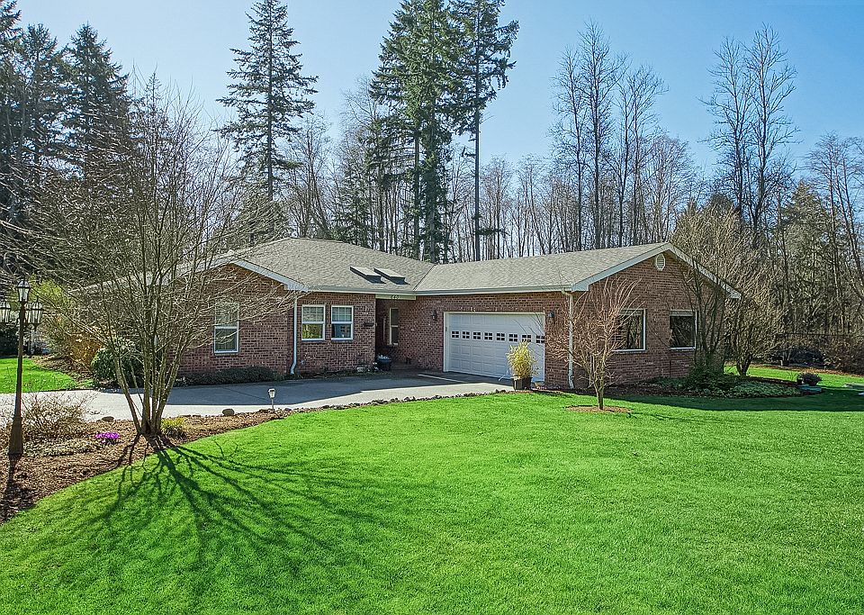 Uniquely secluded w/own gate. Park like setting, custom one-of-a-kind brick rambler. Nice lawns, huge covered back patio w/skylights & built in propane barbecue. 2 skylights in great room. Island granite kitchen. Separate dining. Master w/2 walk in closets. Bath with make-up vanity, soaking tub w/large windows looking out to courtyard. Master and dining both w/access to back patio. Laundry w/hobby sewing area. Home filled w/light via lots of windows/ skylights, solartube. 2 car garage w/workout.