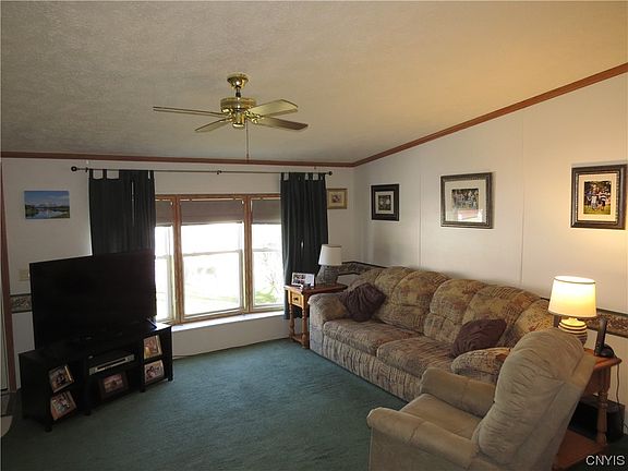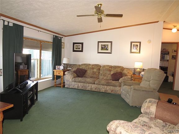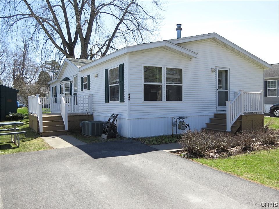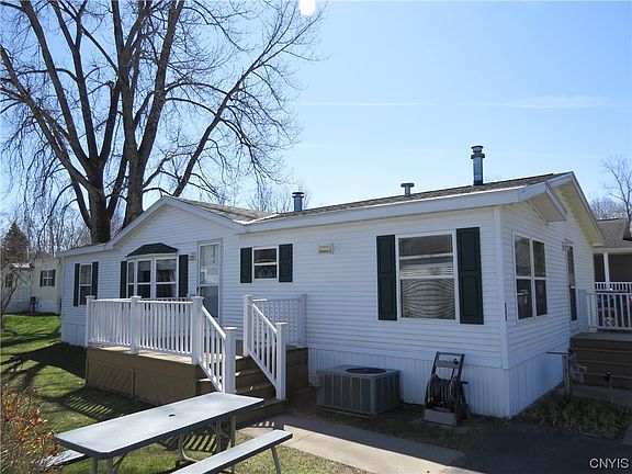 Come see this spacious and cozy home located in Terrace Hill Estate Manufactured Home Community. Featuring 3 bedrooms, 2 baths with cathedral ceilings along with a large eat in kitchen and living room. A nice deck to enjoy in warmer weather and a wood burning fireplace for chilly days. Roof in newer! Well maintained and in move in condition. There is a gas furnace and central air conditioning. Lot rent is $411 which includes trash, water and sewer. All sales are subject to Park approval which includes a credit check. Application can be found at www.Gardenhomesmanagement.com.