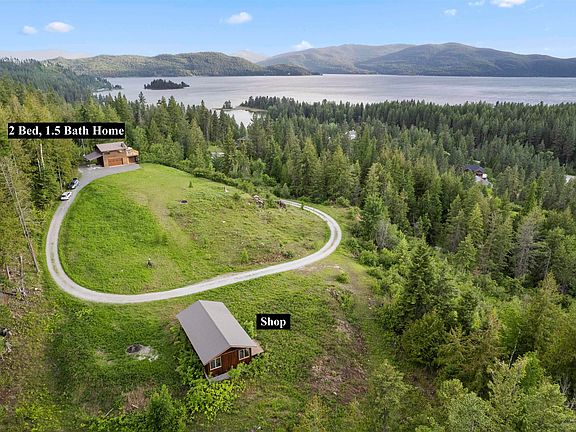 Discover the Ideal secondary waterfront Location to Build Your Dream Home/Homes in North Idaho. Enjoy breathtaking views of Bottle Bay, Sandpoint, Schweitzer Mountain, Selle Valley, Chimney Rock, and the Seven Sisters, overlooking beautiful Lake Pend Oreille. These private, ready-to-build sites are located in the desirable Sunnyside area. It offers a rare opportunity with majestic 270 degree views, along with access to the private community beach and boat docking spaces. The property spans over 5+ acres, consisting of three individual lots. On the premises, you'll find a beautiful 2-bedroom/1.5-bathroom cabin with a 2-car attached garage, laundry/bathroom, and a modest living area with shop space. The cabin is situated on a 1.61-acre parcel, adjacent to a 1.60-acre parcel and a 2.20-acre parcel, making a total of 5.41 acres. To truly appreciate the stunning beauty of this site, experience it at sunset and witness the awe-inspiring view firsthand. It's the perfect opportunity to build your dream homes and take in the unmatched beauty of Sunnyside!