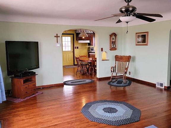 "Quiet Country Living!" This 2 bedroom home sits on just under an acre, with a partially finished basement offering two extra bedrooms, and 1/2bath. The spacious living room presents beautiful wood floors, with the charm of cove ceilings, and is open to the dining & kitchen. Very efficient Geothermal heat with newer Hydrojet holding tank & hot water heater, copper plumbing/thermostat, air purifier, and recently purged system. Looking for a workshop? The 3.5 garage is roomy, with a small office area to the back and the easy access of a side garage door. Nice private spot in the country to call home! Home is being sold "as is."