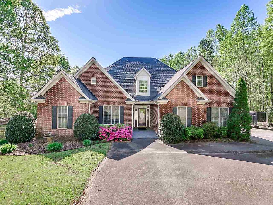 This all brick traditional style home has over 247 feet of water frontage. The home is nestled among the 1.39 acre lot which offers lots of privacy and the walk to the water is level. This custom built home is a one level with a finished bonus room and a sunroom that is heated and cooled. The floor plan of this home has split bedrooms, raised ceiling in the great room with a gas log fireplace, two bedrooms have trey ceiling, the laundry room has a sink and door that leads to the screened porch. Above the side entry garage is a finished bonus room with walk out attic storage. Call today to view this home and see how this can be your new address.