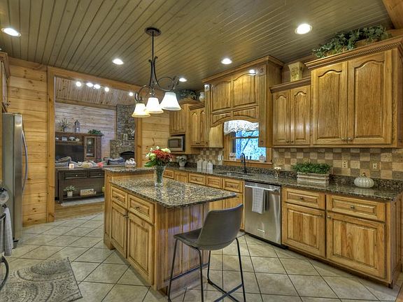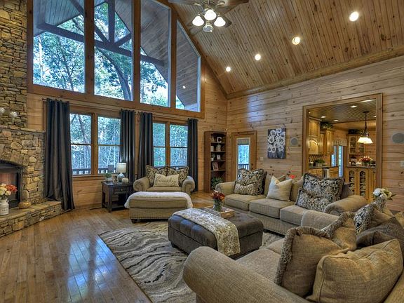 Rustic Elegance Awaits ..this 3-4 bedroom/3.5 bath lodge style home boasts flowing layout & plenty of room to roamsituated on 5+ gentle acres with perfect end of road privacygreat room boasts soaring ceilings and ornate stone fireplace, chefs kitchen features craftsman cabinetry, granite counters & stainless appliances, spacious dining area, master on main w/ ensuite bath features jetted & heated soaking tub, his/hers vanities, tile shower, & walk in closest, warm wood interior, guest rooms with private baths + large multipurpose room is great for bunk room, home office, play/exercise room, large laundry & storage leads to oversize garage, lovely loft area, sprawling covered porch, inviting foyer & grand entry, full ready to finish terrace level/basement is framed for 2-3 extra bedrooms/baths, kitchen, den & opens to large covered patiosgreat for future expansion, surplus of outdoor storage, fabulous fire pit, all paved access, in ground pool & hot tub with excellent outdoor entertaining area40x40 workshop pithing walking distance has roll up doors, utilities, and is set up for workshopgreat for variety of usesall of this within minutes from Lake BR & downtown Blue Ridge...great full time home or vacation/corporate rental with ultimate curb appeal and plenty of room for the toysa must see!