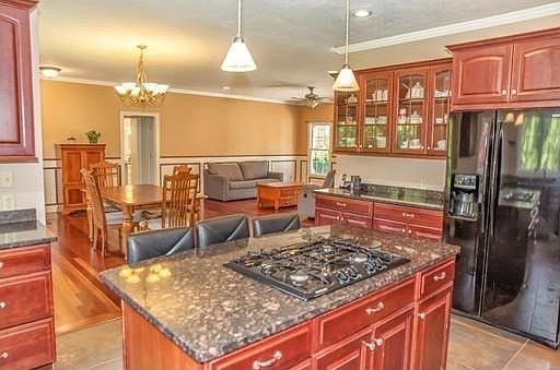 - Kit Dscrp: Pantry, Countertops - Stone/Granite/Solid, Cabinets - Upgraded, Kitchen Island, Recessed Lighting