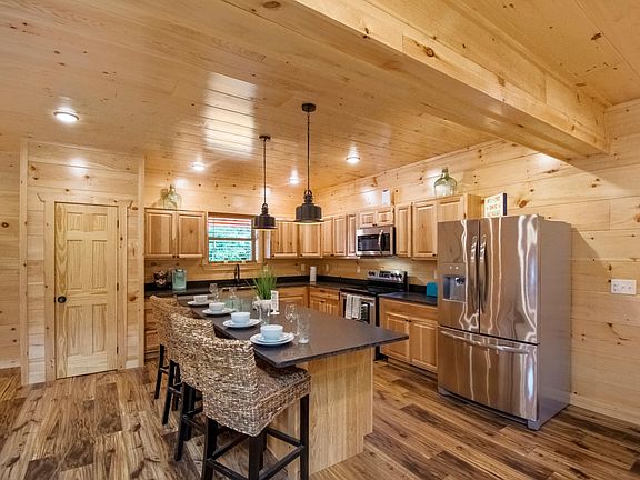 INDOOR HEATED POOL, Game room, movie theater, arcade games, hot tub on the deck! This cabin has it all! Great location and very private. This is a furnished month to month rental perfect for someone who wants to get away in the mountains for a few months!