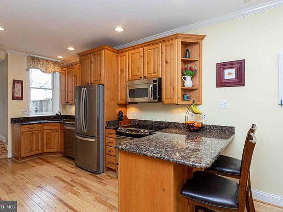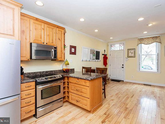 Ridgely's Delight is a historic neighborhood of tree-lined streets and this charming rowhome is located on a quiet street directly across from a large green open space, yet close to the stadiums, and all commuter routes. Over 1600 square feet of character with exposed brick and ornamental fireplace, hardwood floors and a spacious living area with soaring ceilings. Open kitchen design with granite counters and stainless steel appliances. The spacious master bedroom suite has tons of natural light and overlooks the park and has a large closet with built-ins and a master bath. The extra-large 2ne bedroom has new carpet and closet. The quaint cobblestone back patio is fully fenced adding privacy and perfect for entertaining. Ridgely's Delight is convenient to University Center or Downtown and for commuters using Light Rail, MARC or the Beltway. Residents will enjoy an active community association that hosts many events, a community park, a playground and it's just a stone's throw from the stadiums.