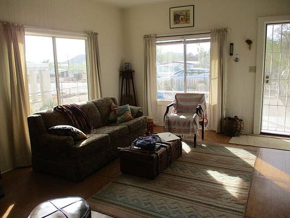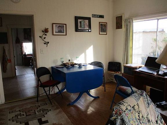This 1918 built house has had tender loving care put into it. It has been cleaned, painted, stuccoed, and re-roofed. It has an open living room-dining area with large windows. From the front porch, one can relax, read, or watch the sun set behind the mountains. One can also relax in the back yard with its privacy fence. There is an RV hookup and a trailer casita set up for guests.
