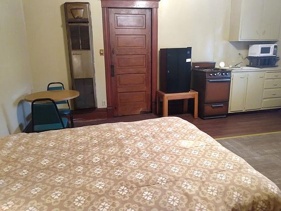 This affordable studio apartment is fully furnished and includes utilities in the rent, $150 a week, or $600 a month. It is located in a pleasant neighborhood, just southwest of downtown Springfield. It is accessible by climbing five steps. To qualify, applicants must be at least 21 years of age and undergo a background check covering both rental and criminal history. To ensure an allergen free environment, we do not allow pets in our buildings. There is a refundable $100 cleaning fee due at the time of rental.