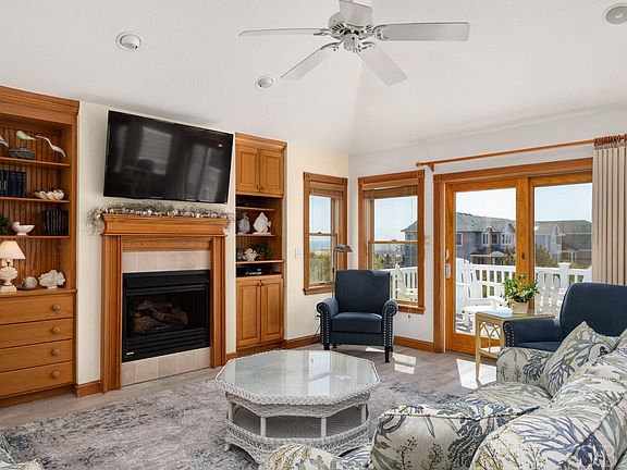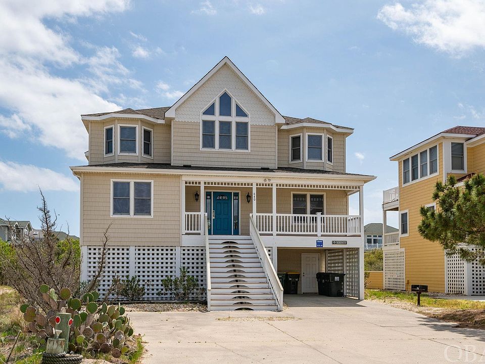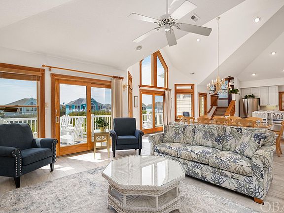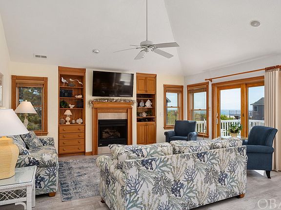 Lowest price per Square Foot of any Corolla semi-oceanfront! Located in the desirable Ocean Lakes section of Ocean Sands, this 7-bedroom turnkey home features ocean views and is just steps to the beach. Enjoy the privacy of the Ocean Sands green space behind the home and the convenient location of the beach boardwalk at the end of the driveway. The upper level of the home is comprised of a spacious open flow floor plan- family room with cathedral ceilings and fireplace; an oversized dining area; and the kitchen with breakfast bar seating and ample storage/counter space. Enjoy ocean views from the Ships Watch or step outside onto the ample sundeck to enjoy the morning sun rising over the Atlantic. There is also a half bath on this level as well as the Primary en Suite. This top-level bedroom boasts privacy, space, ocean views, and a separate bathroom with an oversized walk-in glass shower and double vanity. Take the elevator down to the mid-level where you will find four more en suite bedroom with private bathrooms, and another bonus room/office set up as sleeping space. An ocean side covered deck runs along the southern elevation, providing convenient access to the new mid-level Jacuzzi Play hot tub. The ground level features two more bedrooms that share a full hall bath, and a spacious rec room with wet bar and adjacent half bath. The comfortable game room has plenty of room to play pool, stretch out and watch TV, or just relax and cool off after a day in the sun. “Serenity View” checks all the boxes for a vacation property- ocean views, open concept floor plan, large en suite bedrooms, elevator, and game room with wet bar. Situated on an X flood zone lot and convenient to the attractions, shopping, and dining of the northern beaches, this vacation property offers the proximity, updates, and space the discerning buyer is looking for.