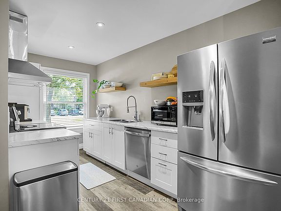 Open-concept main floorSpacious kitchenUpdated kitchenStainless steel appliancesGenerous bedroomsCharming accent wallsFinished lower level
