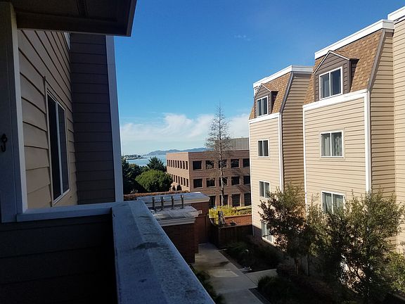 Great 1 bedroom, 1 bath condo in the wonderful Bridgewater complex. Looks out over courtyard, with views of the bay and Golden Gate Bridge from the deck. Stone counter tops and stainless steel appliances. Fireplace and laminate flooring in living room. Carpet in bedroom. Plenty of closets and cabinets. Club house, workout room, pool and 24 hour security desk and much more!