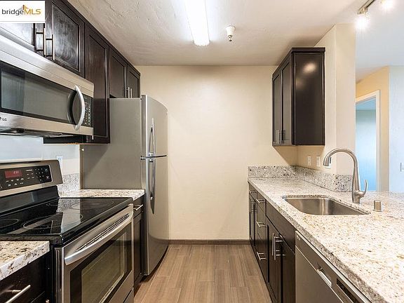 Welcome to Bridgewater, a premier community in the heart of Emeryville! This bright and beautifully updated 2-bedroom, 2-bath 985 Sq Ft condo offers modern comfort with an open-concept layout and abundant natural light. The spacious living area extends to a private walk-out balcony—with a peekaboo view of the Golden Gate Bridge. The renovated kitchen features stainless steel appliances and generous cabinetry, connecting seamlessly to the dining and living spaces. The primary suite includes a walk-in closet and a private ensuite bath, while the second bedroom also offers a walk-in closet for excellent storage. Additional conveniences include in-unit laundry hookups and one dedicated parking space. Bridgewater delivers resort-style living with 24-hour security, package management, a fitness center, sparkling pool and spa, BBQ area, business center, recreation clubhouse, and beautifully landscaped grounds. Ideally situated near shopping, dining, and commuter routes to San Francisco and the greater East Bay, this home offers the perfect blend of comfort, convenience, and lifestyle.
