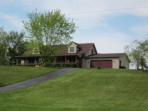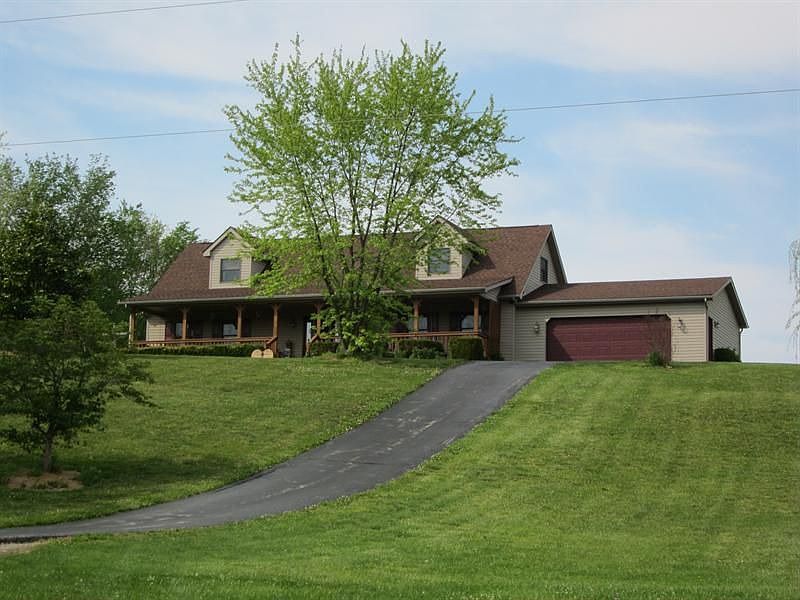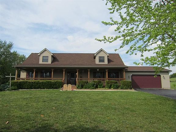 Located near the South edge of Hillsboro at 6400 Dunlap Road, this attractive 3 bedroom, 2 bath Cape Cod home boasts a formal living room, wood floors, and an antique gas stove! A spacious dining/family room has been neatly designed with a corner gas fireplace! Special features include a remodeled country Birch kitchen with a preparation island built ready with water for the coffee pot! Ceramic tile and a pantry to hold your canned goods! A 12x16 master bedroom suite offers a jet tub, walk-in closet and double vanity! Two bedrooms and a full bath are located on the 2nd level! An amenity worthy of mention is the full length covered front porch! A covered rear porch, open deck, and gazebo arrangement is ideal for entertaining! A blacktop drive leads to a 2 car attached garage! The 36x60 pole barn has been constructed with electric, 2/3 concrete floor, and loft! A knoll top setting overlooking a tree-lined creek on 3.852 acres creates a country estate with city conveniences! A must see!