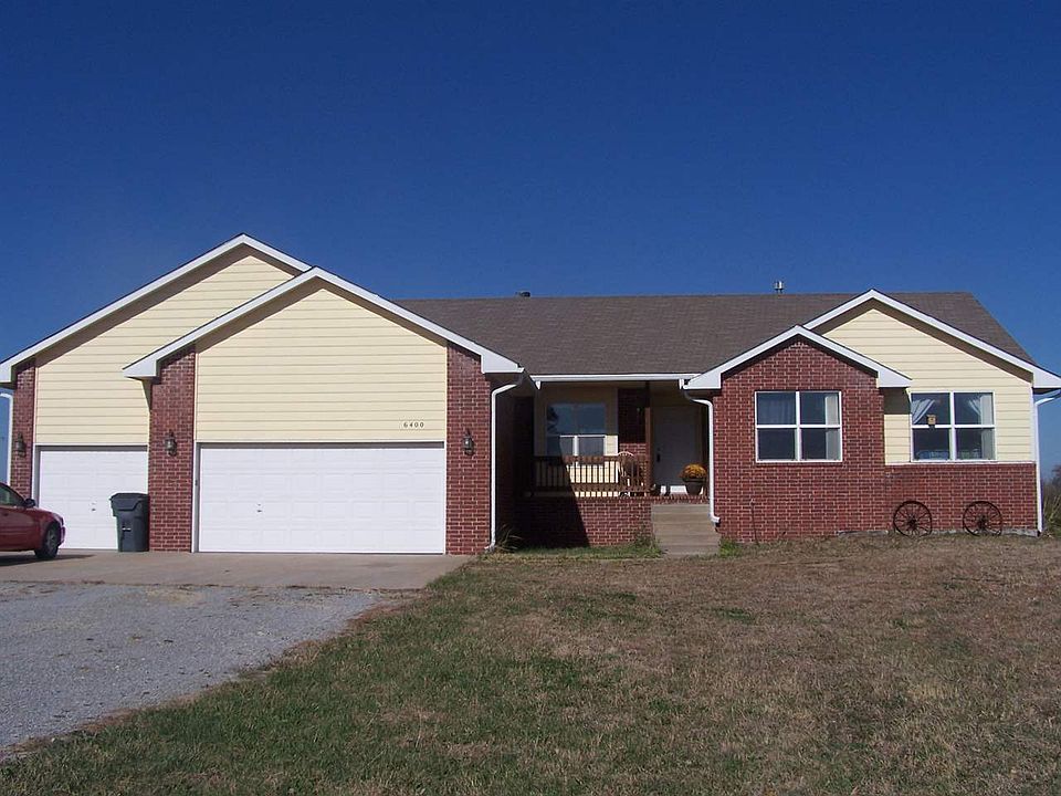 Great country home just in time for the Holidays. Great access to Rock Road, close to Derby and in the Derby School District, this great family home sits on a 5 acre corner lot. Plenty of room to spread out and for the kids to play. This total electric home on rural water is perfect for family fun and for entertaining. The kitchen comes with all the appliances, an island eating bar and work space, walk in pantry and new light fixtures. There is a breakfast eating space and walk out to the back deck. A two way wood burning fireplace compliments the kitchen area and the living room. Lots of windows throughout let in the natural light. The living room is open to the formal dining area. Down the hall is the master bedroom suite with a walk in closet and it's own bathroom which has his and her sinks, and a Jacuzzi tub. The main hallway full bath and two more bedrooms complete the upstairs. There is a fourth bedroom in the basement with two large closets and an unfinished family room with some sheet rock put up and just waiting to be designed by the new owner. There is a roughed in bathroom space and even a space for the wet bar. The walk out view out basement also has a pellet stove to warm the play area. There are washer/dryer hook ups in the basement in a separate room and on the main floor. The over sized three car garage has two openers, is fully finished out and has an abundance of storage, shelving and lots of peg board. If you want a small acreage in the Country with space enough for the whole family, call to schedule a showing today.