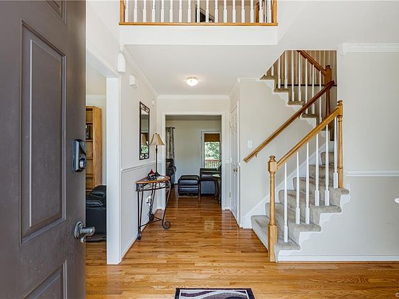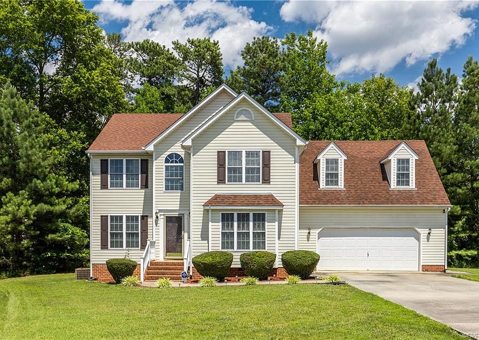 Welcome home! Nestled at the end of a quiet cul-de-sac, this 4 bedroom, 2.5 bath home boats 2,329 square feet of spacious living. Enter in to the sunny foyer leading to your large family room and dining room with chair rail and crown molding. The light filled living room features a gas fireplace and access to your eat in kitchen and large back deck overlooking your private backyard. Hardwood floors throughout the first floor. A convenient half bath and oversized 2 car garage complete the main level. Upstairs, a large master suite with a walk in closet and an en suite bathroom with a jetted tub and separate shower. 3 additional bedrooms complete the second floor. Other features include an irrigation system in the front yard and newer roof. Lovely neighborhood with easy access to major highways, shopping, and dining!