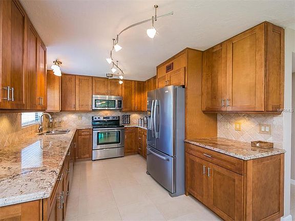 Totally remodeled from top to bottom, not for a rental but for family use . The wall has been taken down to open up this oversized, custom kitchen. 42in Kraft Maid cabinets, granite with travertine backsplash and stainless appliances with a view from the kitchen window. Both bathrooms have matching cabinetry and Beautiful grout less tile floors throughout for ease of cleaning. Front lanai has been enclosed with glass and transom windows. The back lanai has been enclosed with hurricane windows from floor to ceiling. Slide open to enjoy the breeze or sit on your private outside patio. Enjoy the tranquil view of tropical trees and plants out to the fragrant vines surrounding the closest pool. Surrounded by water on 3 sides, Westbay Point is a private community with 4 pools, spas, tennis courts, shuffleboard, kayak racks and owned docks that can usually be rented from a neighbor. Onsite manager, with all maintenance kept internal, therefore low condo fees. One of the very few turn key, remodeled units.