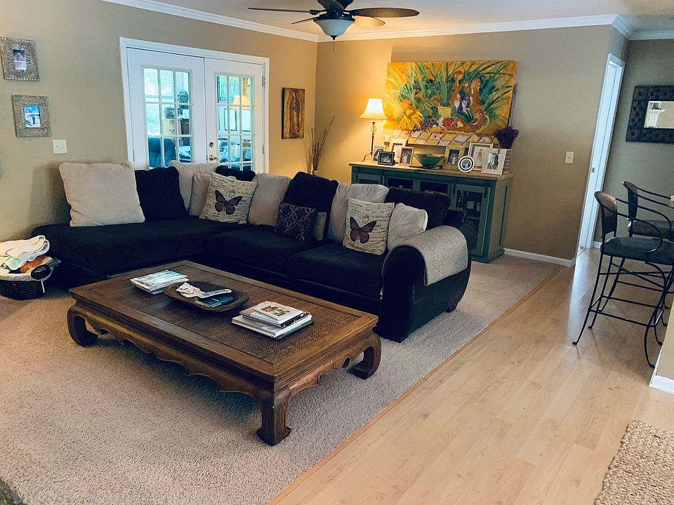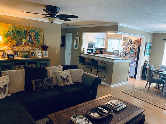 Located in the quiet Ridges of Green Island, this split bedroom private upstairs end unit is tucked away in the back of the property. With a rare open floorplan, enjoy your wood burning fireplace and tv on the sofa, in the kitchen or dining at the table. Relax and start your day watching the news in your jacuzzi tub or walk in shower. Enjoy the spacious walk in closet for two with your master bedroom. Custom concrete countertops in the kitchen and bathroom, stainless steel appliances, and indoor and outdoors HVAC units installed May 2019 with 10 year warranty. 100 sq ft sunroom with new double hung windows installed 2017. Cable, Water, trash, pool, clubhouse access and building insurance covered with HOA dues.