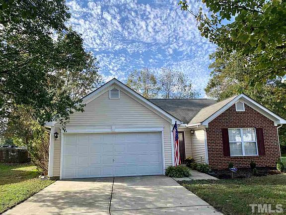 Split 3 Bedroom Ranch on Cul-de-sac. Two-car garage, private fenced backyard with view of pond. Laminate flooring throughout home. Vaulted Ceilings. Refrigerator, Washer, Dryer convey. Large family room w/Gas Fireplace and ceiling fan. Family room open to Kitchen and Breakfast Room. Walk to Buffaloe Athletic Park and Neuse River Walking Trails. Easy assess to I-540, US-64, US-264 and I-440. Twenty minutes to RDU Airport. Near shopping malls and Grocery Stores.