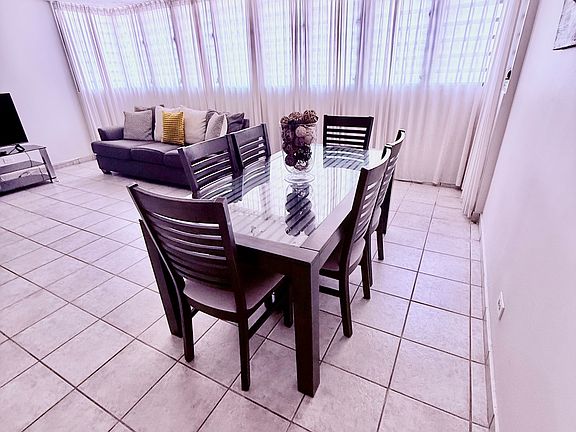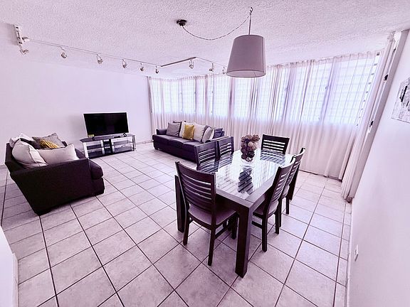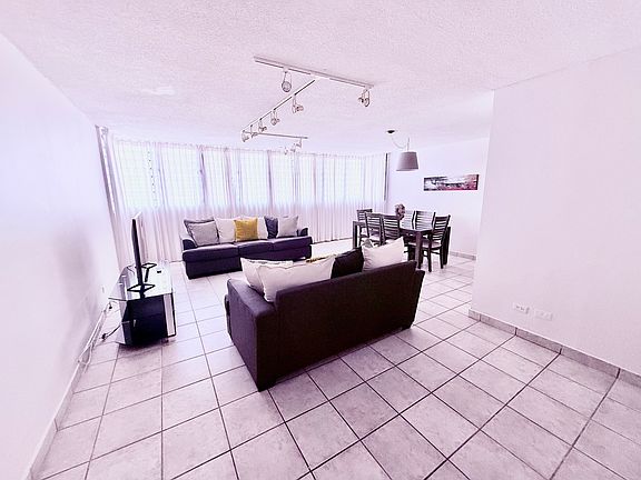 New in the market! Middle Floor Enjoy this , spacious furnished apartment with 1,400 s/f with 3 bedroom, walking closet, 2 full bathroom apartment, open kitchen fully equipped, laundry area with washer and dryer, open space with spacious living- dinning area, central a/c ( High efficiency) . 2 pkg. spaces (one covered and other one as a first come first serve). Los Pinos offers: art gym, -power generator for communal areas, water cistern, 24/7 security guard, gated community, pool area & gazebos, tropical gardens, elegant lobby. Conveniently located just steps away from Isla Verde Beach and in front of the El San Juan Fairmont Hotel. 5 minutes drive from the international airport. Good credit a must and no pets are allowed. Owner pays HOAF