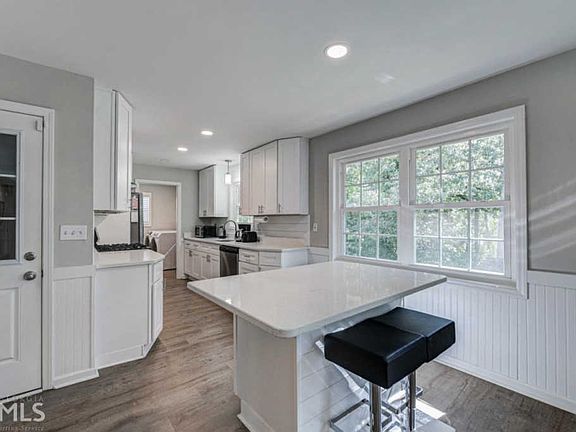 Beautifully Renovated Brick Ranch! A Flowing, Open Floorplan invites you inside. Entertain with ease between the Spacious Family Room, Central Dining Room, and Gorgeous Kitchen with Stainless Steel Appliances, Quartz Countertops, Shiplap Backsplash, and Island Breakfast Bar. Unwind in the Main-Level Master Suite with Updated Tile Bathroom. Two Additional Bedrooms share a Hall Bathroom with Extended Vanity. Downstairs, a Partially Finished Daylight Basement offers Easy Storage or Expansion Opportunities. A thoughtful Laundry Room with Custom Drop Zone completes the interior. Step outside, to find a Large Deck overlooking a Tree-Lined Backyard. A Two-Car Garage welcomes you home! Minutes from Hartsfield-Jackson Airport, Sweetwater Creek State Park, and all of Intown Atlanta.
